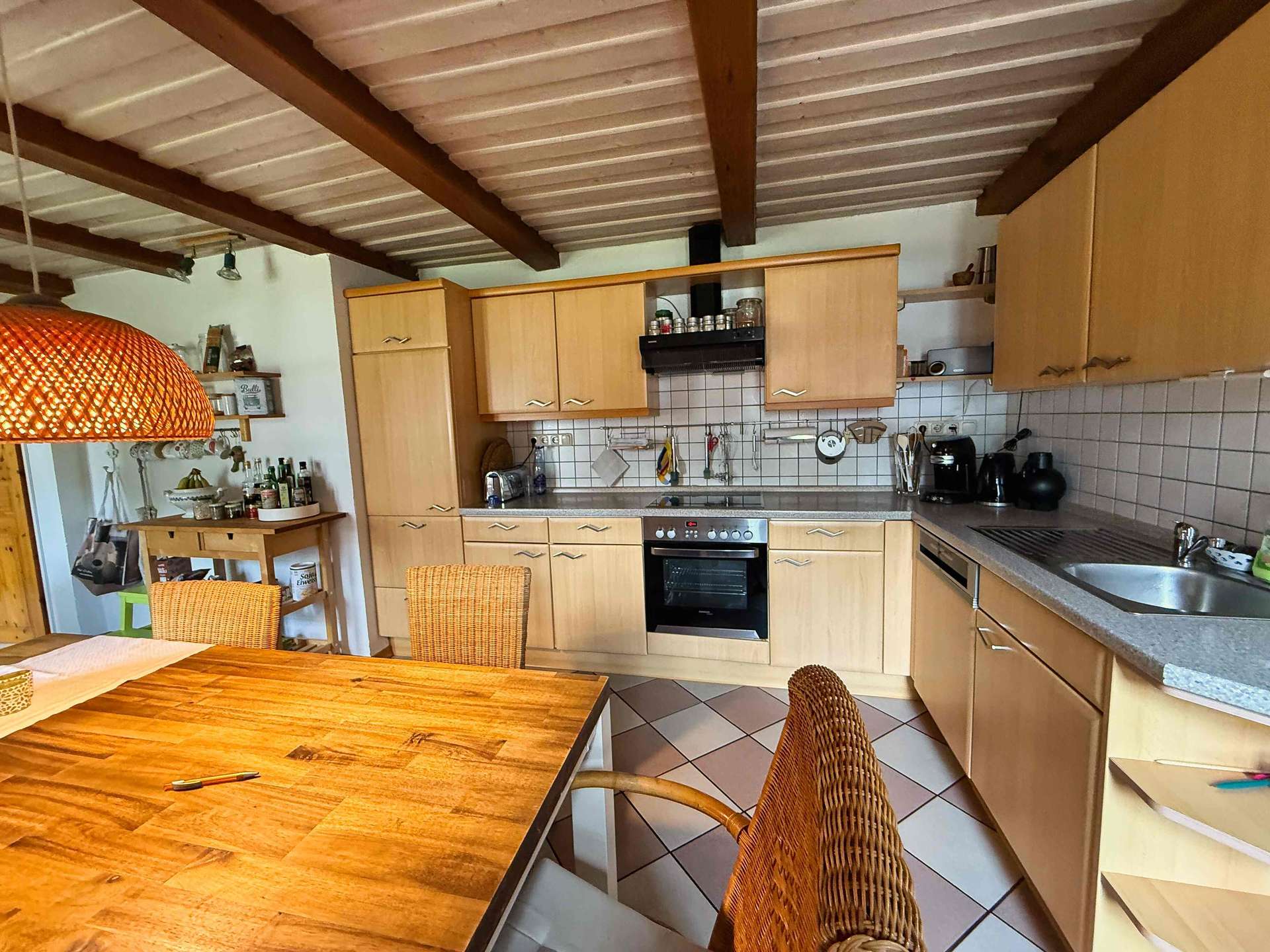 Im Mittelpunkt des Hauses steht die großzügige Wohnküche, die zum Kochen, Genießen und geselligen Beisammensein einlädt – ein echter Lieblingsort für Familie und Freunde.