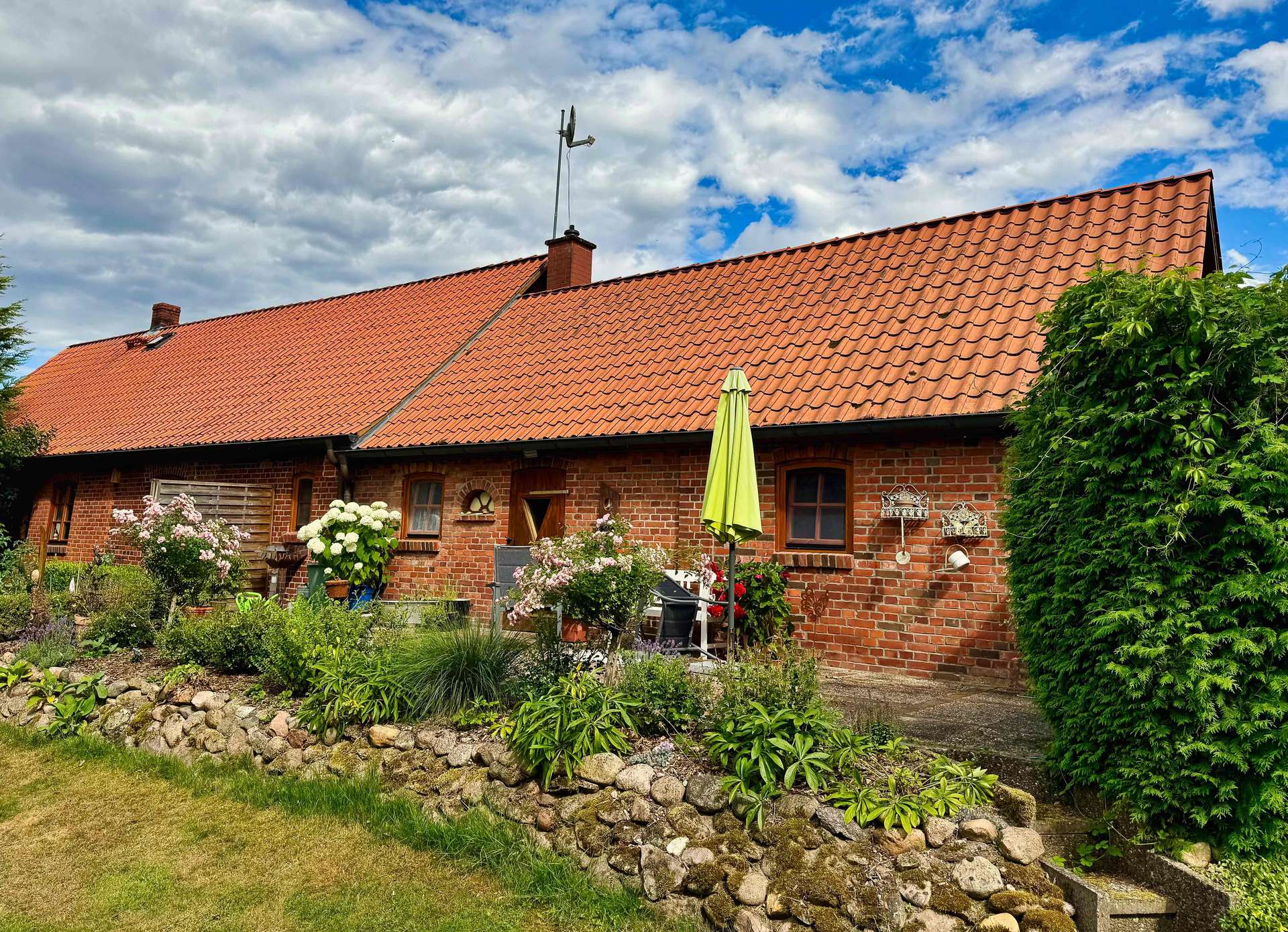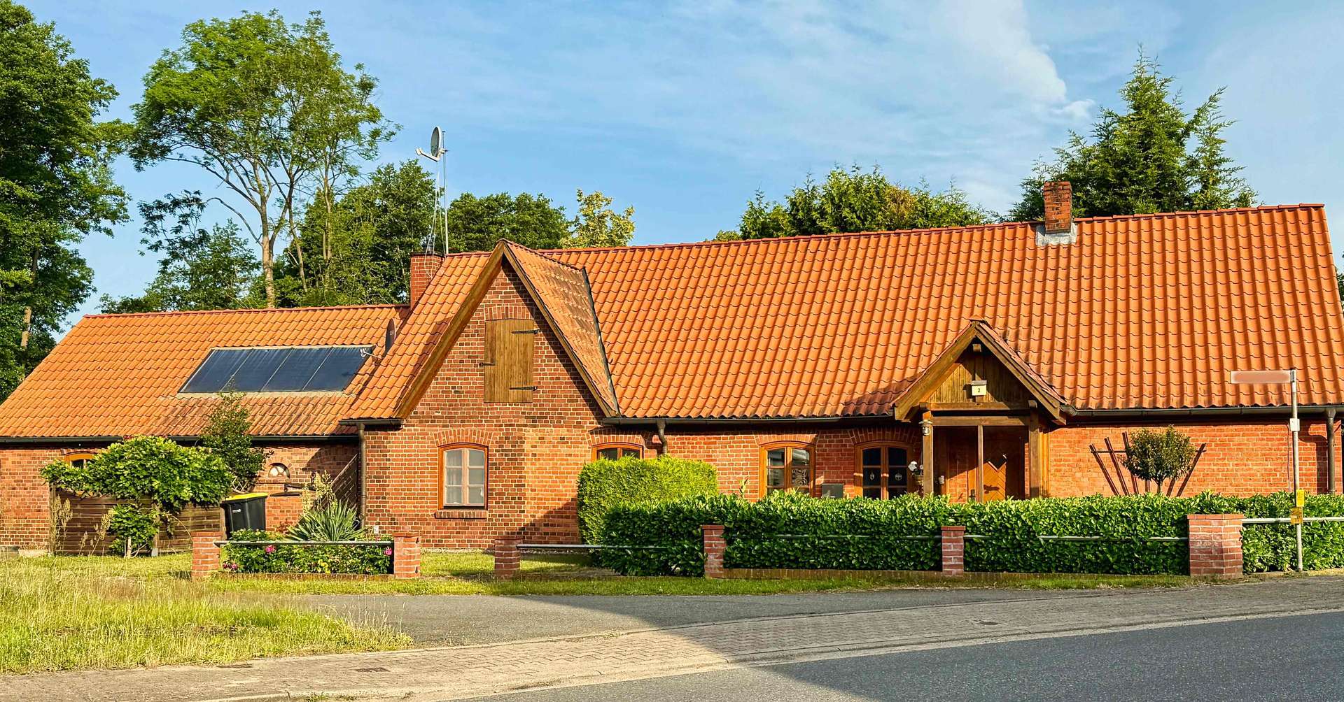 Das massiv gebaute Klinkerhaus überzeugt mit einer soliden Bauweise, klassischem Satteldach mit Solaranlage und rund 140 m² Wohnfläche, die sich auf fünf Zimmer verteilen. Die Holzfenster mit Doppelverglasung unterstreichen den ursprünglichen Charakter, während moderne Ergänzungen für zeitgemäßen Wohnkomfort sorgen.